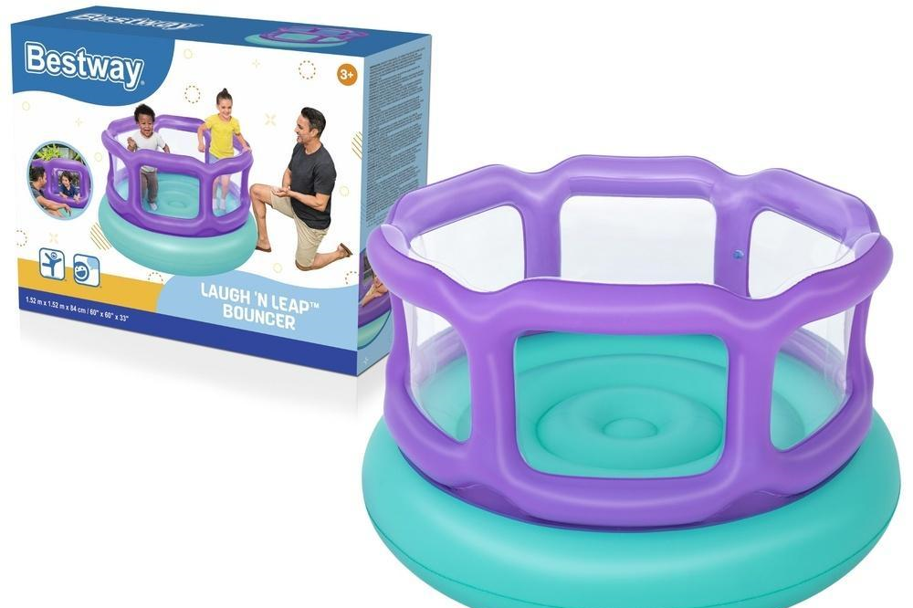 Dmuchana Trampolina Bestway 52646 Przeznaczony dla maksymalnie 2 dzieci od 3. roku życia, ten kolorowy, okrągły dmuchaniec zapewni godziny radosnej zabawy. Fioletowe, nadmuchiwane ścianki zwiększają bezpieczeństwo, gdy maluchy skaczą i śmieją się do woli.Zabawa na dmuchańcu to idealny sposób, by dzieci mogły spożytkować nadmiar energii, a przy tym rozwijać kluczowe umiejętności. Przeskakiwanie, czołganie się i wchodzenie do środka wspiera rozwój motoryki dużej, natomiast wspólna zabawa z innymi dziećmi buduje pewność siebie i umiejętności komunikacyjne. To wszystko przekłada się na zdrowy rozwój i radość z aktywności fizycznej. Dane techniczne: - przeznaczony dla dzieci powyżej 3 roku życia - wymiary 152 cm x 152 cm x 84 cm - maksymalne obciążenie 60 kg Waga opakowania: 5 kg
