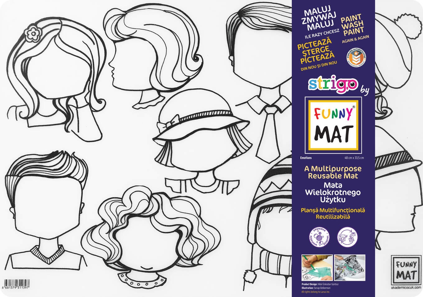 Opakowanie Transparentna mata Strigo Funny Mat Twarze 48x33.5 cm