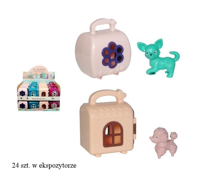 Plastikowe pupile w transporterze. Kotki i pieski, różne modele i kolory. Zbierz wszystkie dla większej możliwości zabawy! Produkt występuje w kilku wersjach kolorystycznych, wybierany losowo. Cena dotyczy jednej sztuki. Podane wymiary są przybliżonymi wymiarami transportera.
