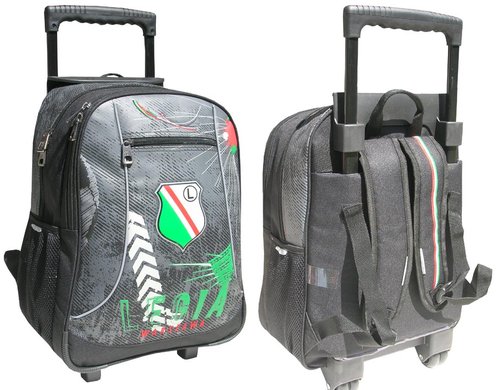 '- materiał: poliester 300D, - szelki: regulowane, profilowane, wzmacniane, wypełnione pianką, - plecy: usztywniana konstrukcja , dodatkowe osłony oddzielające trolley od pleców, - dwie komory główne, - przegroda między komorami z poliestru 600HD, - kieszeń przednia, - dwie kieszenie boczne, - kieszeń wewnętrzna, - wielowarstwowe, wzmacniane dno w obydwu komorach, - kieszenie przednie i wewnętrzna zamykane na suwaki, - grube, wzmocnione suwaki, - trolley do jeżdżenia tornistrem, - suwaki zakończone dekoracyjnymi końcówkami LEGIA WARSZAWA, - uchwyt do przenoszenia lub powieszenia tornistra, - dodatkowa osłona na kółka w trakcie przenoszenia, - elementy odblaskowe poprawiające widoczność Ucznia