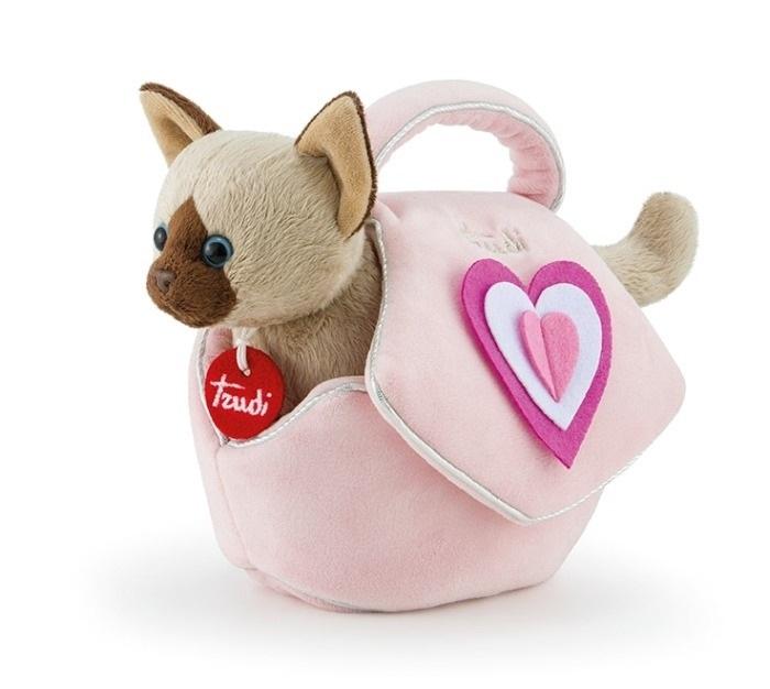 Pluszowa przytulanka - kotek w różowej torebce z serduszkami Zabawka bez ograniczeń wiekowych