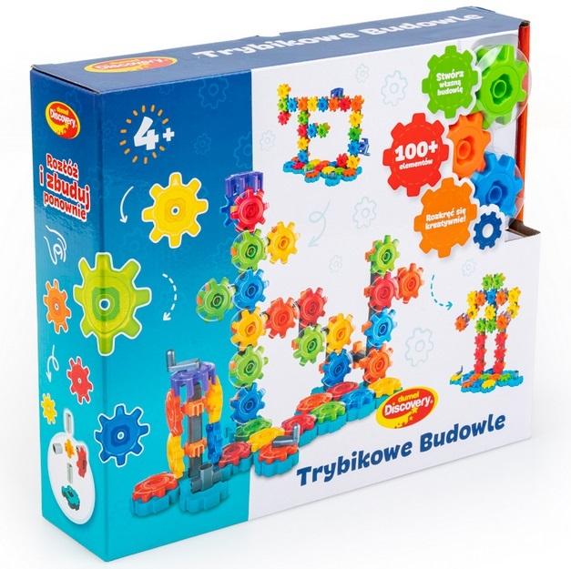 Duży zestaw kolorowych zębatek i korbek przeniesie zabawę na zupełnie nowy, twórczy poziom! Znajdziemy tu ponad 100 elementów, pozwalających na wyczarowanie własnej budowli, opartej na trybikowych połączeniach. Po odpowiednim zamontowaniu części, zakręć korbką, aby jeden wprawiony w ruch trybik, poruszył pozostałe! Testuj różne połączenia i przekonaj się jaka to frajda.