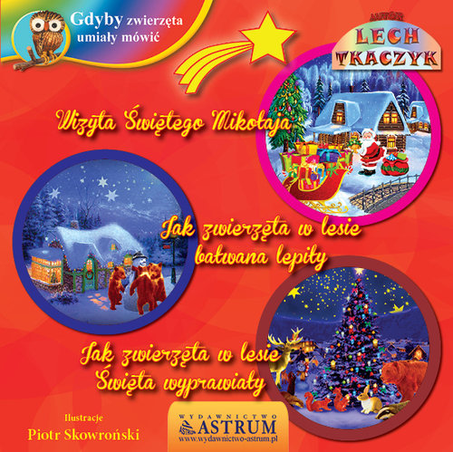Wybór trzech bajek: 1. BAJKA WIZYTA ŚWIĘTEGO MIKOŁAJA. 2. BAJKA JAK ZWIĘRZĘTA W LESIE BAŁWANA LEPIŁY. 3. JAK ZWIĘRZĘTA W LESIE ŚWIĘTA WYPRAWIAŁY. Poznajemy... jest ciekawą serią Wydawnictwa Astrum stworzoną z myślą o najmłodszych Czytelnikach. Autor, Lech Tkaczyk proponuje Państwu wierszowane bajeczki, napisane lekkim, żartobliwym językiem, łatwym do zrozumienia przez najmłodszych. Każda historyjka w zabawny i przyjemny sposób uczy małego człowieka podstawowych czynności i pojęć. Za pomocą prostej techniki – powtarzania, maluch w krótkim czasie zacznie sam liczyć, rozróżniać kolory czy odczytywać godzinę. Barwne obrazki pobudzą wyobraźnię, dzięki czemu nauka stanie się zabawą, a zabawa nauką. Dziecko poznając świat w taki sposób nie czuje przymusu, ponieważ uczy się poprzez zabawę, a umiejętności nabywa całkowicie naturalnie, niemal dodatkowo. Nie muszą Państwo czekać, aż w żłobku czy przedszkolu Wasze maleństwo będzie szkolone przez nauczycielki. Czasem pierwsze kroki na ścieżce edukacji stają się przyczyną niemiłych wspomnień, a są przecież niezwykle ważne i mają ogromny wpływ na późniejsze podejście dziecka do nauki. Za pomocą książeczek edukacyjnych i słuchowisk wydawnictwa Astrum będą Państwo w stanie sami przekazać małemu człowiekowi podstawowe wiadomości i pokazać mu, że nauka jest ciekawa i przyjemna. Na serię tę składają się książeczki, komiksy, malowanki, audiobooki i słuchowiska: Jak Pan Alfabet do przedszkola maszerował, Mama uczy cyferek, Bajka o Panu zegarze, Jak przedszkolaki park sprzątały i kolory poznawały, Policjant, Strażak, Kominiarz, Listonosz. Dzisiaj zapraszamy do trzech bajek: 1. BAJKA WIZYTA ŚWIĘTEGO MIKOŁAJA. 2. BAJKA JAK ZWIĘRZĘTA W LESIE BAŁWANA LEPIŁY. 3. JAK ZWIĘRZĘTA W LESIE ŚWIĘTA WYPRAWIAŁY. Zapraszamy do zapoznania się ze wszystkimi bajeczkami! Oprawa twarda. Stron 61, format a4, full kolor wydanie na kredzie.