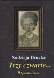 Życie jest wielką grą, która wymaga podsumowania"" pisze Nadzieja Drucka i takim podsumowaniem jest jej książka Trzy czwarte... wspomnienia. Opowiada w niej o swoim dzieciństwie, jego radościach i smutkach, o niezapomnianych przyjaźniach nawiązanych w młodości, o miłości do męża i córek, o swoim małżeństwie, o opuszczeniu kraju rodzinnego i znalezieniu w Polsce drugiej ojczyzny, i wreszcie o słodko-gorzkim smaku starości. Odsłania jednak tylko trzy części prawdy o sobie, tę czwartą pozostawiając Czytelnikowi do odnalezieniamiędzy wierszami"".