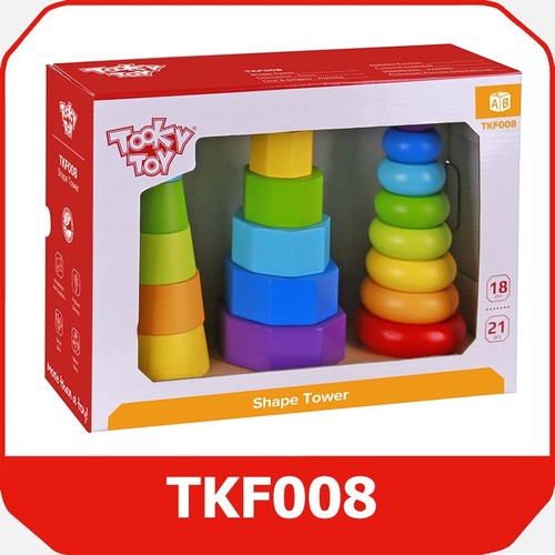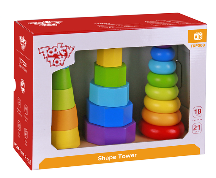 Trzy Wieże to drewniany sorter kolorów i kształtów. Na podstawce trzeba ułożyć trzy wieże według kształtów. Umieszczając klocki w odpowiednich miejscach, dziecko ćwiczy zdolności manualne, rozwija umiejętności logicznego myślenia, koordynację ręka – oko, uczy rozpoznawania kolorów oraz pojęcia większy – mniejszy. Zabawki Tooky Toy są bezpieczne. Posiadają certyfikaty ekologicznych produktów. Pozbawione ostrych krawędzi, dobrze wygładzone, pomalowane są nietoksycznymi farbami i lakierami. Wiek: 18 m+