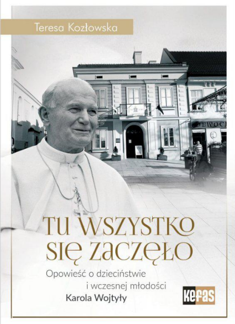 OPOWIEŚĆ O DZIECIŃSTWIE i WCZESNEJ MŁODOŚCI KAROLA WOJTYŁY Tu wszystko się zaczęło to zbeletryzowana opowieść o dzieciństwie i wczesnej młodości Karola Wojtyły spędzonych w Wadowicach. To tu przyszedł on na świat. Tu również formowała się jego fascynująca osobowość, a atmosfera rodzinnego miasta miała bez wątpienia duży wpływ na kształtowanie się charakteru przyszłego papieża. Opowieść Autorki rozpoczyna się w chwili narodzin Lolka. Towarzyszymy mu zarówno w bolesnych doświadczeniach, jak przedwczesna śmierć matki, jak i w chwilach szczęścia i radości. Poznamy wiele nieznanych faktów z dzieciństwa i wczesnej młodości Karola Wojtyły, a także jego zainteresowania i pasje – miłość do literatury, radość, jaką sprawiało mu tworzenie poezji i nauka języków obcych, fascynację teatrem. Książka pokazuje relacje, jakie łączyły młodego Wojtyłę z rodziną a także z kolegami i koleżankami. W tym czasie rodziły się przyjaźnie, które przetrwały do końca życia papieża. Spotkanie z Karolem zakończymy w momencie, gdy wraz z przyjaciółmi i znajomymi, żegna pewien etap życia, by wstąpić w dorosłość. Młodzi ludzie zaciekawieni tym, co przyniesie przyszłość, wierzący w ideały, pragnący spełnienia marzeń, nie mogli przewidzieć, iż rok później wybuchnie II wojna światowa, która pochłonie tak wiele ofiar i zniweczy wszystkie ich plany. Karol w towarzystwie ojca opuścił Wadowice, ale często tu powracał, a miłość do tej małej ojczyzny pozostała w jego sercu do końca życia. Ta wciągająca historia, ukazująca postać niezwykłego Polaka, uzupełniona została wyjątkowymi fotografiami z rodzinnego albumu Karola Wojtyły i jego rodzinnego miasta. Dzięki nim jeszcze łatwiej przeniesiemy się do Wadowic, miasta, gdzie wszystko się zaczęło.