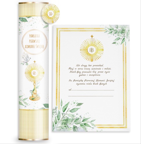 Opakowanie Tuba Pamiątka Komunijna Gołąb z Hostią