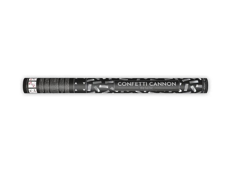 Tuba strzelająca metalicznym konfetti w kolorze srebrnym, długość 60 centymetrów.