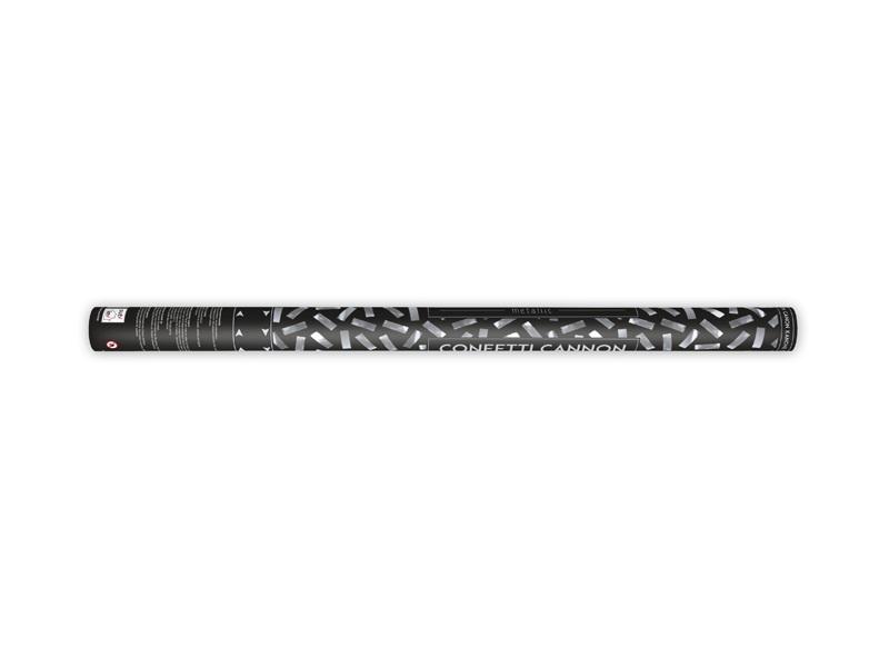Tuba strzelająca metalicznym konfetti w kolorze srebrnym, długość 80 centymetrów.
