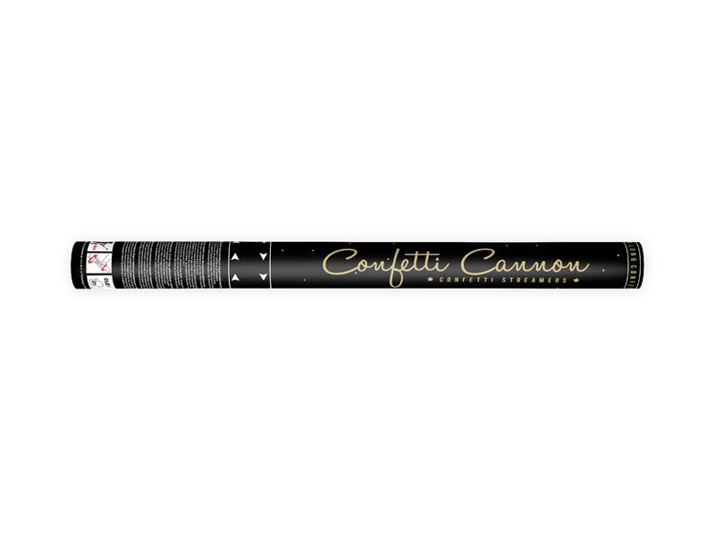 Tuba strzelająca długimi metalicznymi serpentynami w kolorze złotym, długość 60 cm.