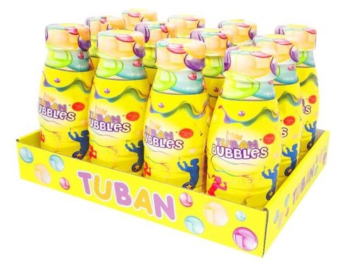 Z pozoru zwykły płyn, a w istocie prawdziwa magia. Starannie opracowana receptura i certyfikaty bezpieczeństwa. Ogromne bańki i piękny zapach – to znak rozpoznawczy tubanowego eliksiru. To gwarancja udanej zabawy i radości dla całej rodziny. Wielokrotnie nagradzany. W wyścigu o jakość niekwestionowany numer jeden. Płyn marki Tuban został wyprodukowany zgodnie z normą PN EN71 tzn. normą dotyczącą bezpieczeństwa zabawek. Posiada znak CE, certyfikat bezpieczeństwa chemicznego oraz bakteriologicznego. Przynosi radość w Polsce i na całym świecie. Idealny do: -dużych baniek -bańkowych tuneli -uzupełniania wszelkiego rodzaju bańkowych zabawek - pistoletów, mieczy, wytwornic -bańkowych sztuczek. Jak go użyć? Wklej płyn do miski. Zamocz w nim jedno z naszych akcesoriów. Gotowe! Możesz rozpoczynać przygodę z bańkami. Możesz też poprostu dmuchać w kółeczka zamocowane do zakrętki - w ten sposób ćwiczysz apart mowy!