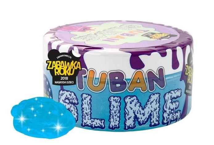 TUBAN Slime neonowy niebieski. Fantastycznie się ciągnie i ugniata. Można z jego pomocą robić slimowe bańki.
