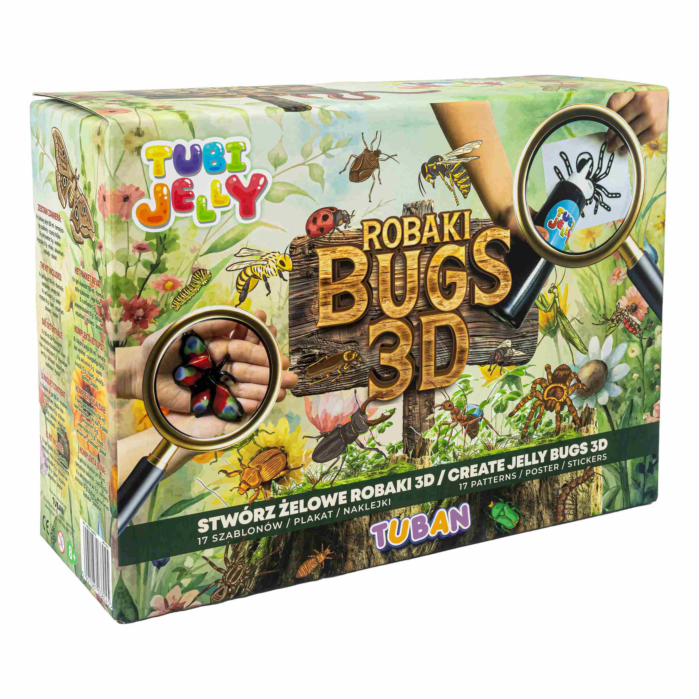 Z zestawem Tubi Jelly Bugs 3D stworzysz żelowe owady. W opakowaniu znajdziesz kolorowe żele oraz 17 szablonów, które ułatwią ci tworzenie projektów. Dodatkowo dołączona pusta folia umożliwi ci narysowanie dowolnego owada według własnego pomysłu. Dzięki specjalnemu aktywatorowi płynny żel zamienia się w trwałą figurkę. Gotowe owady możesz przechowywać w akwarium z wodnymi kryształami, który znajdziesz w zestawie. Dołączone naklejki pozwolą na ozdobienie akwarium, a plakat edukacyjny przybliży ci fascynujące fakty o owadach.