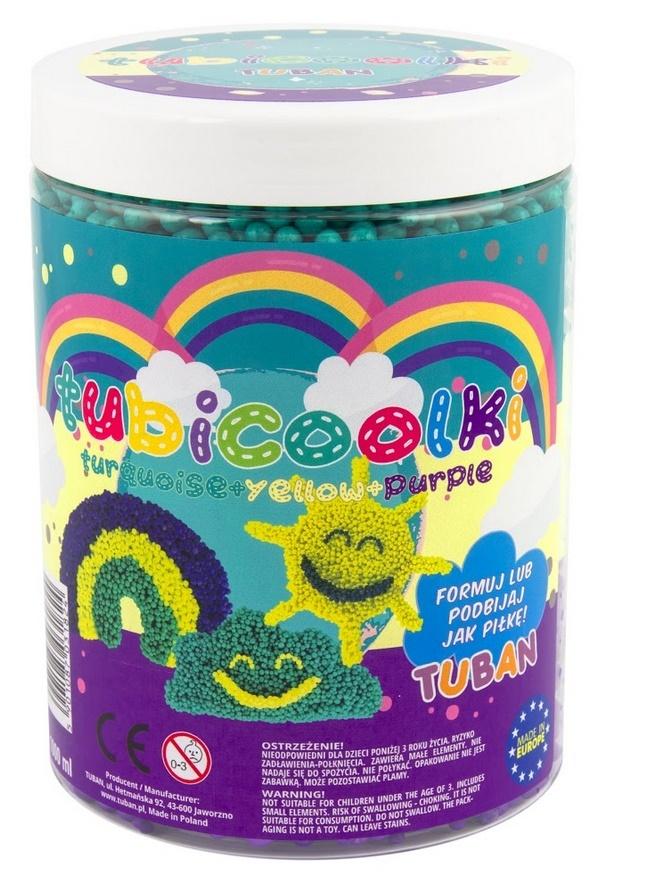 Tubicoolki to wyjątkowa plastyczna zabawka do tworzenia kolorowych figurek. Formując z nich piłkę, możemy ją odbijać. To także zabawka sensoryczna, idealna do ćwiczenia małej motoryki. Tubicoolki mają intensywne, lubiane przez dzieci kolory i nie wysychają. Opakowanie zawiera trzy kolory: turkusowy, żółty, fioletowy.