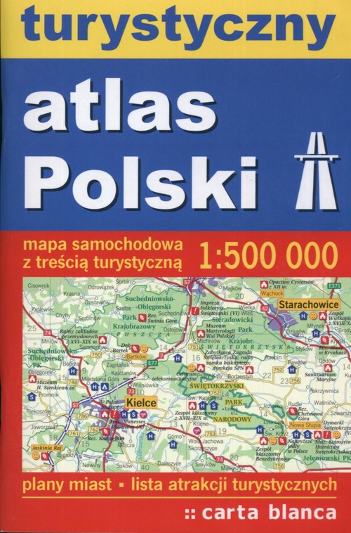 Turystyczny atlas Polski 1:500 000 wydawnictwa Carta Blanca, kieszonkowa wersja hitu wydawniczego dwóch ostatnich lat, cenionego przez czytelników Turystycznego atlasu Polski 1:300 000. Ta przydatna każdemu kierowcy publikacja łączy w sobie zalety mapy samochodowej (aktualna sieć drogowa z numeracją, kilometraż, przejścia graniczne) i turystycznej (miejsca, które warto odwiedzić, baza noclegowa). Wszystkie atrakcje zostały opisane bezpośrednio na mapie, dzięki czemu nie trzeba już analizować legendy i rozszyfrowywać, za jakim symbolem kryje się muzeum lotnictwa, zamek krzyżacki, rezerwat żubrów czy kaplica czaszek. Zainteresowani znajdą tu informacje o imprezach cyklicznych, atrakcjach dla dzieci i miejscach dla aktywnych: ośrodkach sportów wodnych i zimowych. Atlas w cenie składanej mapy samochodowej? Tak, i to w bardziej szczegółowej skali. A do tego obszerna treść turystyczna (także poza granicami Polski), plany miast oraz tematyczne zestawienia największych atrakcji w kraju. Poręczny format i niezwykle atrakcyjna cena sprawiają, że jest to atlas na każdą kieszeń.