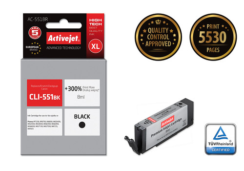 Tusz Activejet AC-551BR (zamiennik Canon CLI-551BK; Premium; 8 ml; czarny)