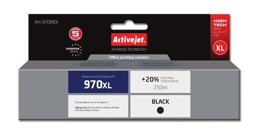 Tusz Activejet AH-970BRX (zamiennik HP 970XL CN625AE; Premium; 250 ml; czarny)