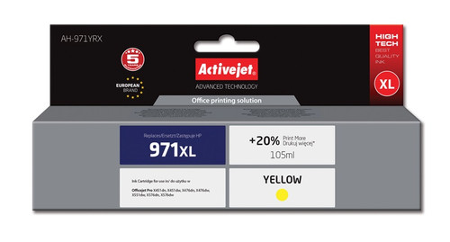 Tusz Activejet AH-971YRX (zamiennik HP 971XL CN628AE; Premium; 100 ml; żółty)