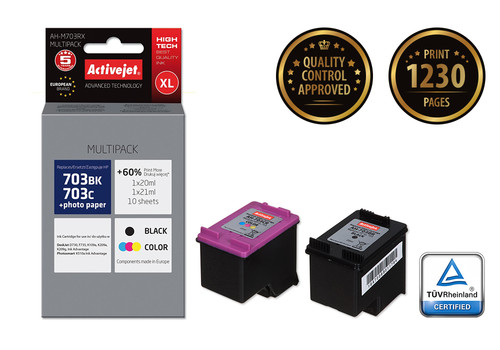Tusz Activejet AH-M703RX (zamiennik HP 703 CD887AE, CD888AE; Premium; 1 x 20 ml, 1 x 21 ml; czarny, kolor)