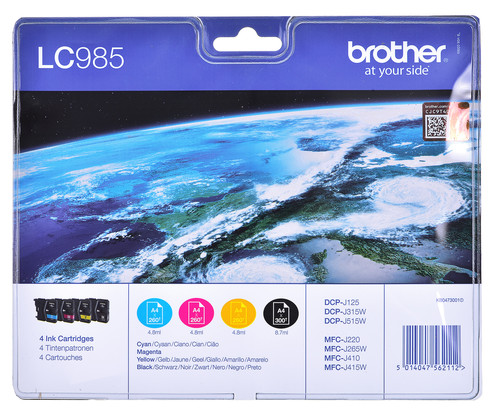 Opakowanie Tusz Brother zestaw LC985VALBP=LC-985VALBP, zawiera CMYBK, LC985C+LC985M+LC985Y+LC985BK