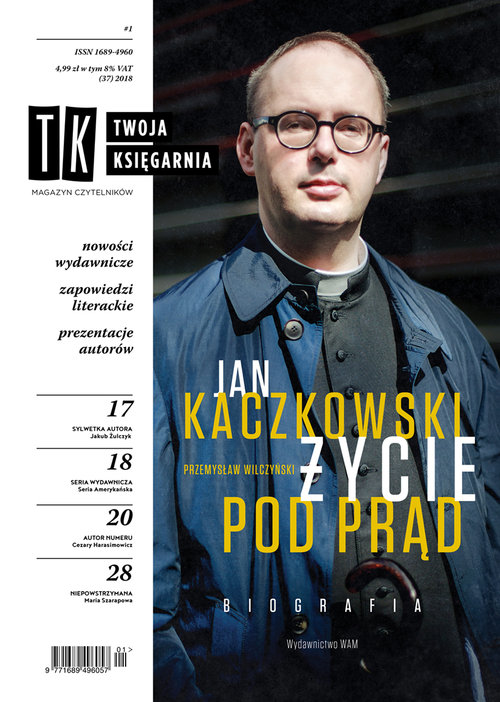 W wiosennym wydaniu „Twojej Księgarni”, które ukazuje się w nowej szacie graficznej, obok sporej dawki różnorodnych nowości i zapowiedzi wydawniczych nie zabraknie także stałych rubryk. Książką numeru jest biografia zmarłego dwa lata temu księdza Jana Kaczkowskiego, która ukazała się nakładem Wydawnictwa WAM. Jej autor, dziennikarz „Tygodnika Powszechnego” – Przemysław Wilczyński, odwiedził wiele miejsc i przeprowadził setki rozmów, aby stworzyć jak najwierniejszy obraz tego niezwykłego kapłana. W kolejnych dwóch artykułach będą mogli Państwo przeczytać o twórczości Jakuba Żulczyka i nowych tytułach z „Serii Amerykańskiej” , opowiadających o kulturze i historii Stanów Zjednoczonych. Zapraszam także do lektury wywiadu z Cezarym Harasimowiczem. Ten znany scenarzysta i pisarz publikuje właśnie swoją kolejną książkę skierowaną do młodych czytelników. W dniach 22-24 czerwca 2018 roku odbędzie się kolejna edycja międzynarodowego festiwalu literackiego Big Book Festival, którą już teraz polecam Państwa uwadze. Zachęcam również do udziału w konkursie z nagrodami (szczegóły obok).