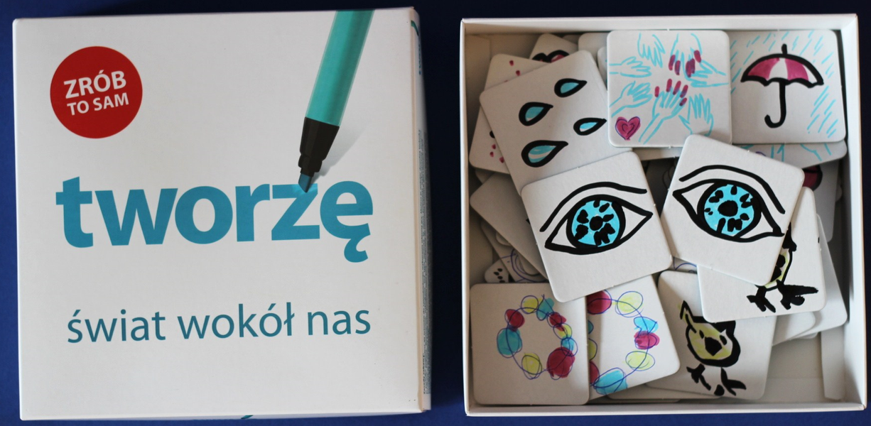 TWORZĘ. ŚWIAT WOKÓŁ NAS to kreatywna zabawa dla całej rodziny. TWORZĘ. ŚWIAT WOKOŁ NAS to zestaw ZRÓB TO SAM, który pozwala na stworzenie własnej serii 40 unikalnych żetonów. Można je narysować kredkami, flamastrami, namalować farbami lub ozdobić naklejkami. Gra typu Memory to tylko propozycja wykorzystania zestawu. Zachęcamy do tworzenia swoich gier i reguł. TWORZĘ. ŚWIAT WOKOŁ NAS rozwija kreatywność dziecka i wspiera jego wszechstronny rozwój: pomaga ćwiczyć pamięć i koncentrację. TWORZĘ. ŚWIAT WOKOŁ NAS pomaga rozwijać pomysły na własne gry i zabawy z dzieckiem. TWORZĘ. ŚWIAT WOKOŁ NAS jest wykonana z wysokiej jakości tektury i papieru, po którym można łatwo rysować. W przeciwieństwie do pozostałych gier z serii powierzchnia nie jest pokryta lakierem. TWORZĘ. ŚWIAT WOKOŁ NAS można łączyć z pozostałymi grami z serii. Żetony mają takie same rewersy. OPIS PRODUKTU: Format pudełka: 16 x 16 x 4 cm Zawartość: pudełka: 40 żetonów do pokolorowania formatu 5 x 5 cm Wyprodukowano w Polsce. Uwaga: zestaw nie zawiera flamastrów ani kredek.