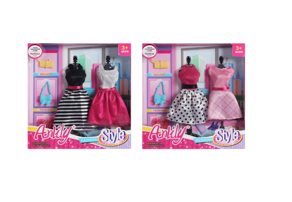 Ubranka dla lalki wysokości 30 cm. Zestaw zawiera 2 ubranka. Mix wzorów, towar wysyłany losowo.