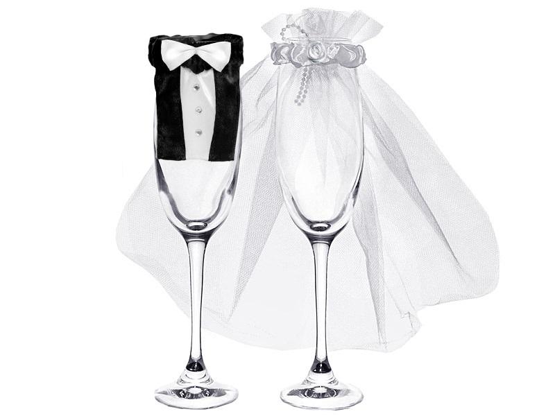 Ubranka na kieliszki, zestaw strojów Pary Młodej.