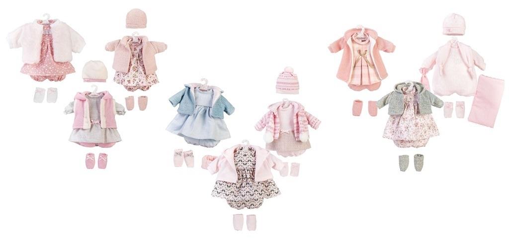 Zestaw przeznaczony dla lalki 35 cm typu Elena- sukienka, sweterek i dodatki, np. czapeczka, majteczki, skarpetki lub rajstopki. Zapakowane w bawełniany woreczek na tekturowym wieszaczku. Mix wzorów. Towar wysyłany losowo.