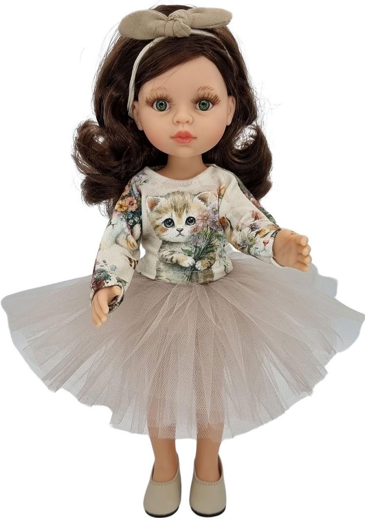 Piękne ubranko dla lalki Paola Reina 32 cm. Firma Paola Reina specjalizuje się w produkcji lalek o wyglądzie i w dotyku przypominającym prawdziwe dzieci. Teraz również do nabycia przepiękne ubranka dla tych laleczek - wyprodukowane na zamówienie. Ubranko doskonale pasuje na laleczki w rozmiarze 32 cm. Zestaw nie zawiera lalki i butów! Ubranko pakowane w woreczek foliowy.