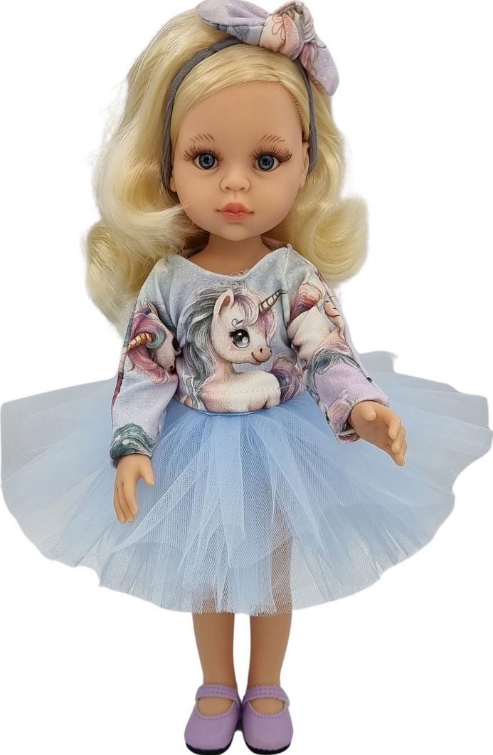 Piękne ubranko dla lalki Paola Reina 32 cm. Firma Paola Reina specjalizuje się w produkcji lalek o wyglądzie i w dotyku przypominającym prawdziwe dzieci. Teraz również do nabycia przepiękne ubranka dla tych laleczek - wyprodukowane na zamówienie. Ubranko doskonale pasuje na laleczki w rozmiarze 32 cm. Zestaw nie zawiera lalki i butów! Ubranko pakowane w woreczek foliowy.