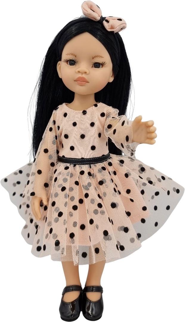 Piękne ubranko dla lalki Paola Reina 32 cm. Firma Paola Reina specjalizuje się w produkcji lalek o wyglądzie i w dotyku przypominającym prawdziwe dzieci. Teraz również do nabycia przepiękne ubranka dla tych laleczek - wyprodukowane na zamówienie. Ubranko doskonale pasuje na laleczki w rozmiarze 32 cm. Zestaw nie zawiera lalki i butów! Ubranko pakowane w woreczek foliowy.