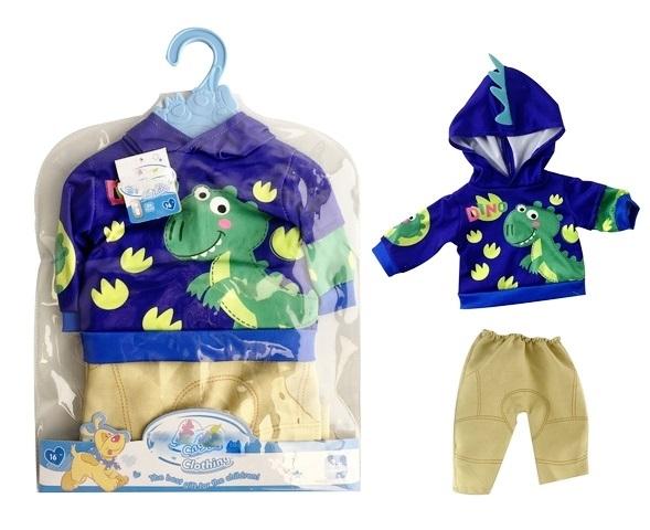 Ubranko dla lalki. W skład zestawu wchodzi bluza w dinozaury i beżowe spodnie. Zestaw pozwoli urozmaicić zabawę dziewczynkom i sprawi, że zabawa ich ulubioną lalką nie będzie już monotonna. Produkt dla dzieci od 3 lat. Podane wymiary są wymiarami opakowania. Zabawka zapakowana w przezroczysty worek.