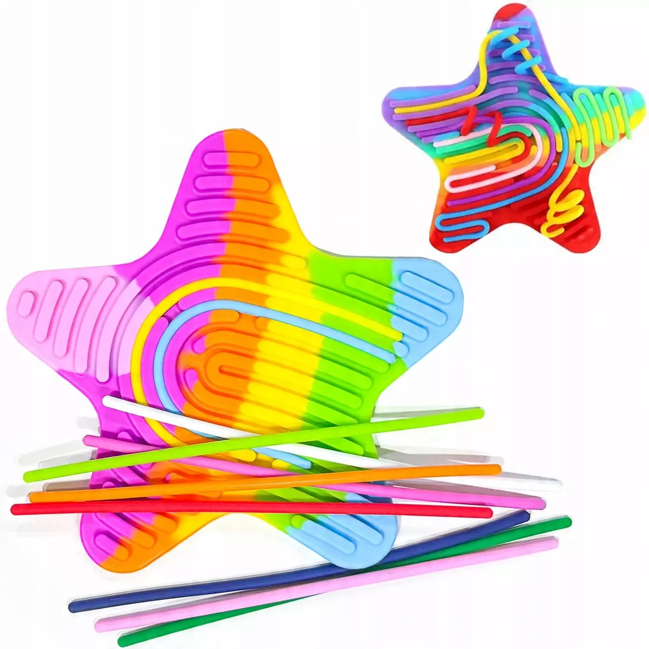 Gra Zręcznościowa "Kolorowa Gwiazda" - Rozwijaj Koordynację i Spostrzegawczość! Kolorowa gwiazda może być grą lub zabawką antystresową!!! Przedstawiamy innowacyjną grę zręcznościową w kształcie kolorowej gwiazdy, która zapewni mnóstwo ekscytującej zabawy całej rodzinie! Ta angażująca łamigłówka to doskonały sposób na rozwijanie precyzji, koordynacji wzrokowo-ruchowej oraz cierpliwości. Cechy produktu: Wciągająca Rozgrywka: Celem gry jest umieszczenie kolorowych patyczków w odpowiednich otworach labiryntu gwiazdy, tak aby patyczki nie wypadły ani się nie zablokowały. Im więcej patyczków, tym trudniej! Kolorowy Design: Gwiazda wykonana jest z elastycznego materiału w żywych, tęczowych barwach, co sprawia, że jest bardzo atrakcyjna wizualnie. Patyczki również występują w wielu kolorach, co dodatkowo uatrakcyjnia zabawę. Rozwój Umiejętności: Gra doskonale ćwiczy precyzję ruchów, logiczne myślenie, planowanie oraz cierpliwość. To świetny trening dla małych rączek i bystrego umysłu. Elastyczny Materiał: Gwiazda wykonana jest z elastycznego, bezpiecznego tworzywa, które jest przyjemne w dotyku i trwałe. Dla Całej Rodziny: Gra w "Kolorową Gwiazdę" to fantastyczny sposób na spędzanie czasu razem. Można rywalizować, kto umieści więcej patyczków, lub współpracować, rozwiązując zadanie wspólnie. Idealna na Prezent: Ta unikalna gra zręcznościowa to doskonały pomysł na prezent dla dzieci w różnym wieku, a także dla dorosłych szukających odstresowującej i angażującej rozrywki. Łatwa do Przenoszenia: Kompaktowy rozmiar pozwala zabrać ją wszędzie - w podróż, na wakacje czy do znajomych. Zawartość opakowania: 1x Elastyczna gwiazda z labiryntem Zestaw kolorowych patyczków Specyfikacja: Materiał: Elastyczne tworzywo Kolory: Tęczowe (gwiazda), różnorodne (patyczki) Wiek: 5+