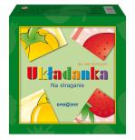 Układanka przeznaczona jest dla dzieci najmłodszych. Opiera się na zasadzie nauki poprzez zabawę i na ważnym elemencie samokontroli. Rozwiązując zadanie dziecko jednocześnie samo sprawdza jego poprawność. To motywuje je do dalszego działania. W układance „Na straganie” zadaniem dziecka jest poprawne ułożenie obrazków przedstawiających owoce i warzywa. Każdy obrazek składa się z 4 części w kształcie kwadratów. Po poprawnym ułożeniu wszystkich elementów dziecko otrzyma 12 obrazków z owocami i warzywami. Dodatkowym elementem samokontroli są ramki na brzegach kwadratów, które po prawidłowym ułożeniu całego obrazka powinny dać zamknięty wzór. Układanka ćwiczy spostrzegawczość, koncentrację i logiczne myślenie. Konieczność manipulowania i prawidłowego zestawiania części obrazków (kwadratów) ćwiczy także sprawność ręki i małą motorykę. Dzięki układance dziecko uczy się nazywania i rozpoznawania kształtów owoców i warzyw. Ułożone obrazki mogą być pomocne w ćwiczeniach i zabawach rozwijających sprawność językową dzieci, które na ich podstawie mogą poznawać i utrwalać nowe słowa, tworzyć rozbudowane