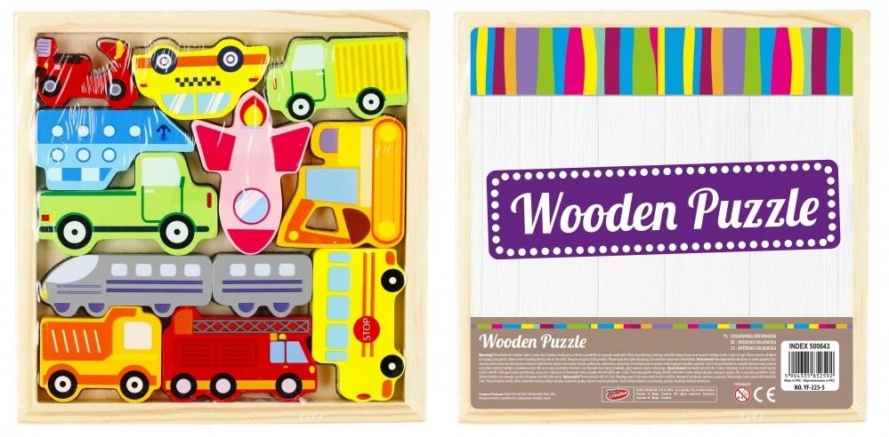 Opakowanie Układanka drewniana 12 elementów Pojazdy