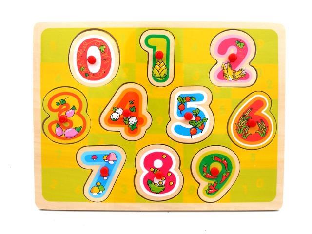 Układanka drewniana z pinezkami Cyfry. Dla dzieci w wieku od 10 miesięcy.