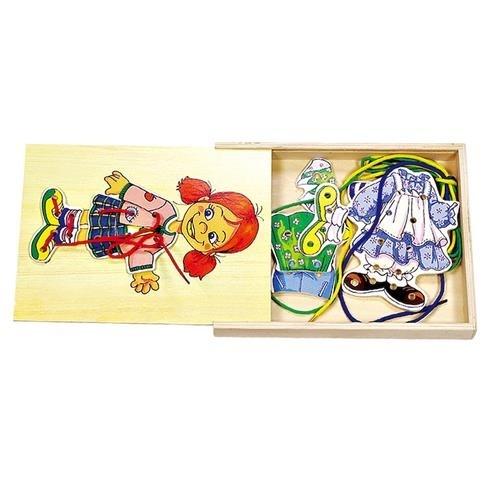 Przewlekanie kolorowych sznurków przez dziurki to świetny trening zręczności, precyzji i cierpliwości. Przeplatanki to dobry wstęp do nauki wiązania butów oraz kokardek. W zestawie kolorowe sznureczki i różne stroje i buciki dla dziewczynki.