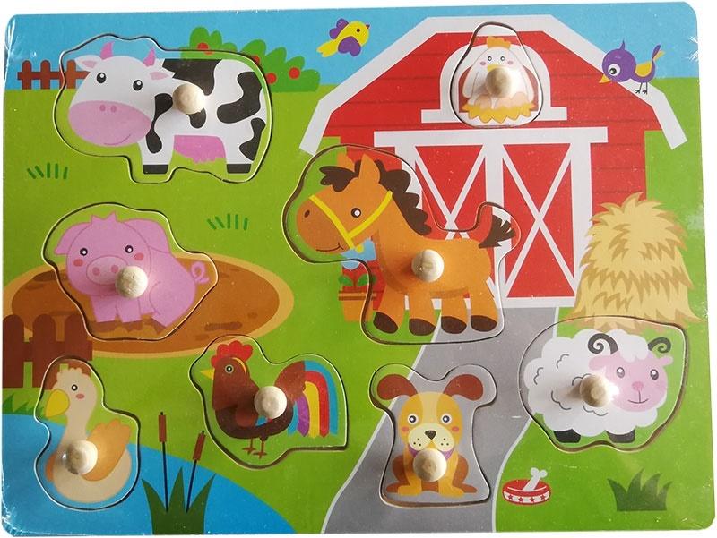 To doskonała zabawka edukacyjna, która kształtuje manualne zdolności dziecka. Ponadto uczy nazw zwierząt, kolorów a także spostrzegawczości oraz koncentracji. Każdy element układanki posiada drewniany uchwyt, który umożliwia dopasowanie i wyjmowanie danego elementu przez dziecko.