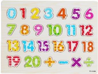 UKŁADANA NAUKA LICZENIA, W ZESTAWIE LICZBY OD 0 DO 20, ZNAKI MATENATYCZNE, WYM. OPK: 29 X 16 X 0,6 CM., 3+