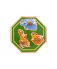 Układanka drewniana ośmiokątka Zwierzęta, 3 elementy.