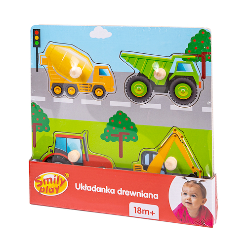 Drewniana układanka puzzle - uchwyty z wizerunkami pojazdów.