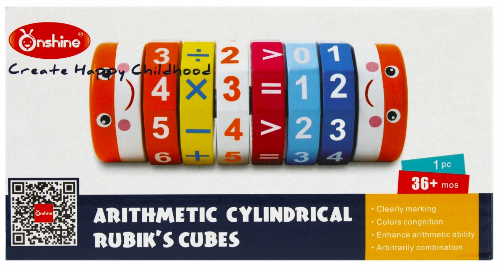 Kostka w kształcie walca posiada elementy w różnych kolorach, zabawa polega na ułożeniu poszczególnych ścian w odpowiednim ustawieniu znaków.