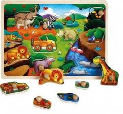Układanka drewniana Safari z dużymi pinezkami. Dla dzieci w wieku od 10 miesięcy