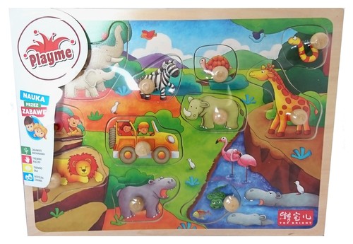 Opakowanie Układanka drewniana z dużymi pinezkami Safari