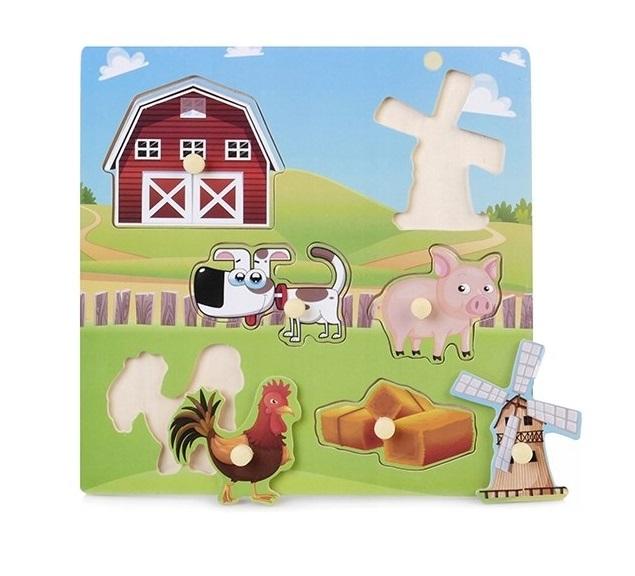 W zestawie: kolorowa podstawa, 6 elementów ilustrujących zwierzęta, każdy z elementów posiada uchwyt, wym opk: 22 x 22 x 0,5 cm., 3+