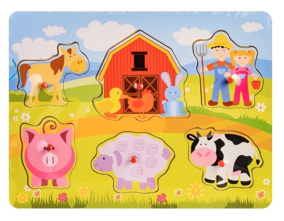 Układanka drewniana na dzieci, rozwija spostrzegawczość i koordynację wzrokowo-ruchową. Puzzle z uchwytami uławiającymi ich przenoszenie. Produkt przeznaczony dla dzieci powyżej 18 miesiąca życia, posiada certyfikat CE