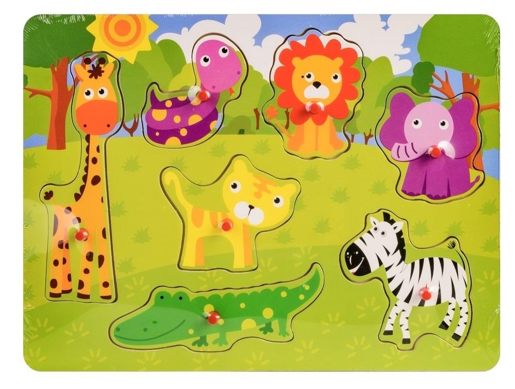 Układanka drewniana na dzieci, rozwija spostrzegawczość i koordynację wzrokowo-ruchową. Puzzle z uchwytami uławiającymi ich przenoszenie. Produkt przeznaczony dla dzieci powyżej 18 miesiąca życia, posiada certyfikat CE