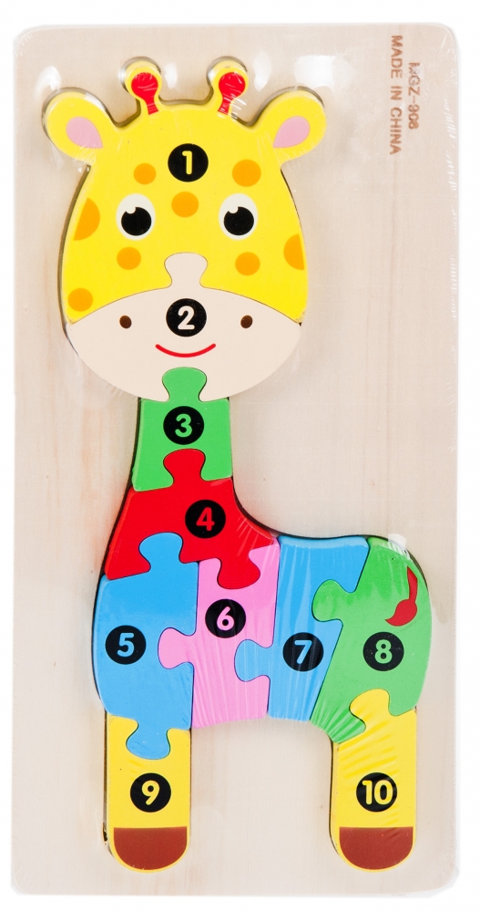 Zawartość zestawu: 10 drewnianych elementów które w całości tworzą Żyrafę.