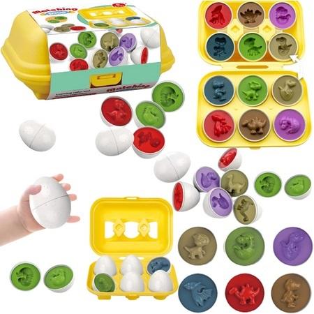 Łączenie połówek: Połówki jajek posiadają wypukłe i wklęsłe formy różnych dinozaurów, które należy połączyć ze sobą. To zadanie nie tylko rozwija umiejętność rozpoznawania kształtów i gatunków dinozaurów ale także motywuje dzieci do logicznego myślenia i trenuje pamięć. Poprzez dopasowywanie połówek jajek, dzieci uczą się koncentracji, cierpliwości oraz wytrwałości w dążeniu do osiągnięcia celu.